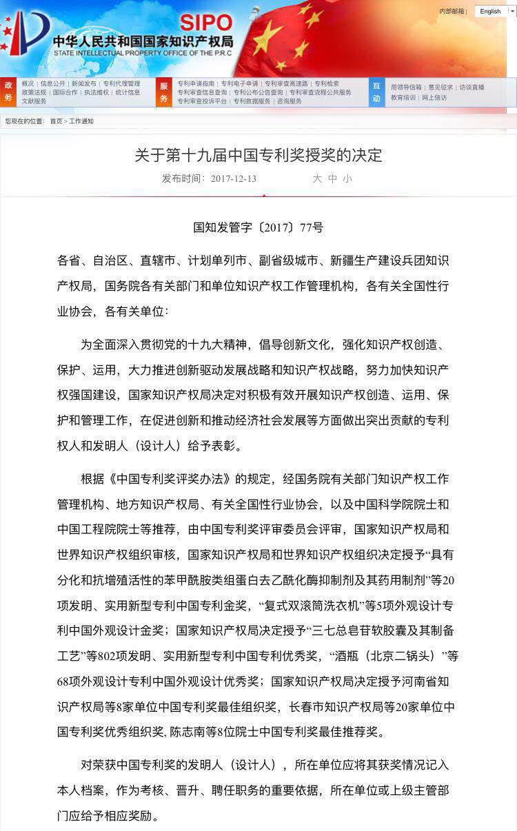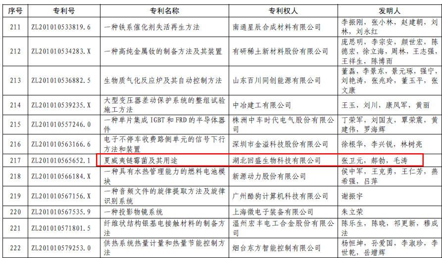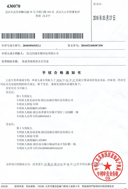 近日,從國(guó)家知識(shí)產(chǎn)權(quán)局傳來(lái)喜訊,應(yīng)城市知識(shí)產(chǎn)權(quán)局組織申報(bào)的湖北回盛生物科技有限公司發(fā)明專(zhuān)利“夏威夷鏈霉菌及其用途”(ZL2010105652.1)榮獲第十九屆中國(guó)發(fā)明專(zhuān)利優(yōu)秀獎(jiǎng),是孝感歷史上專(zhuān)利榮獲的最高獎(jiǎng)項(xiàng)。